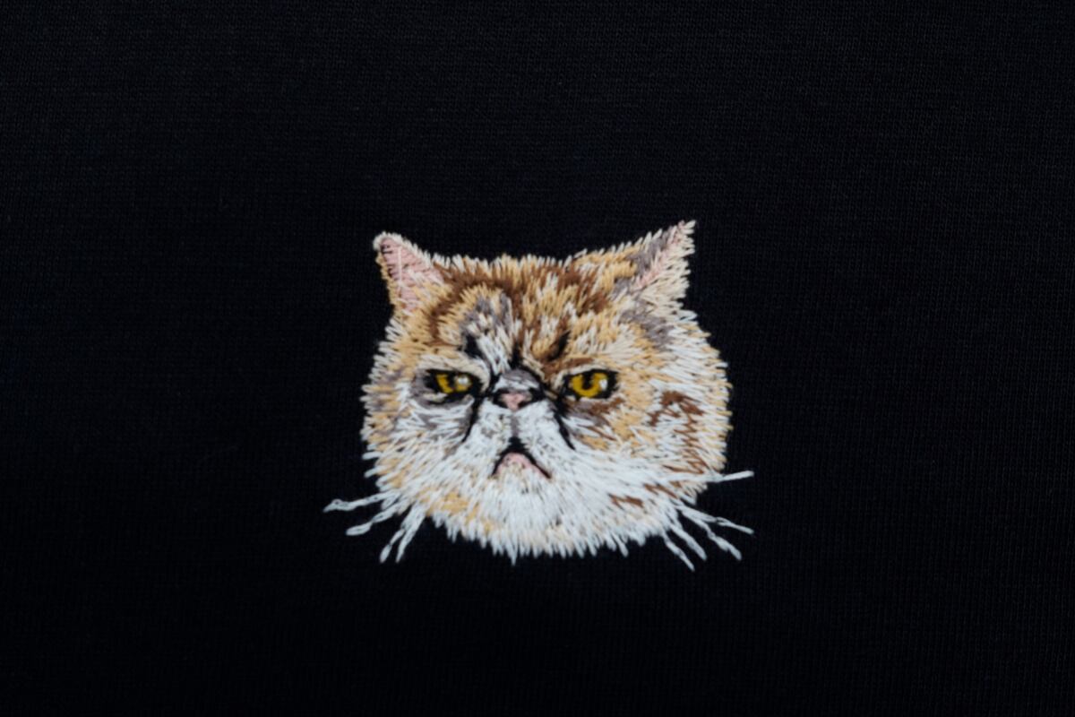 犬猫の刺繍が施されたロングスリーブTシャツです。